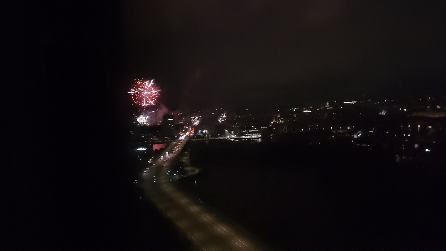 Just before midnight, the sky erupted with fireworks from the Tivoli Fairgrounds: